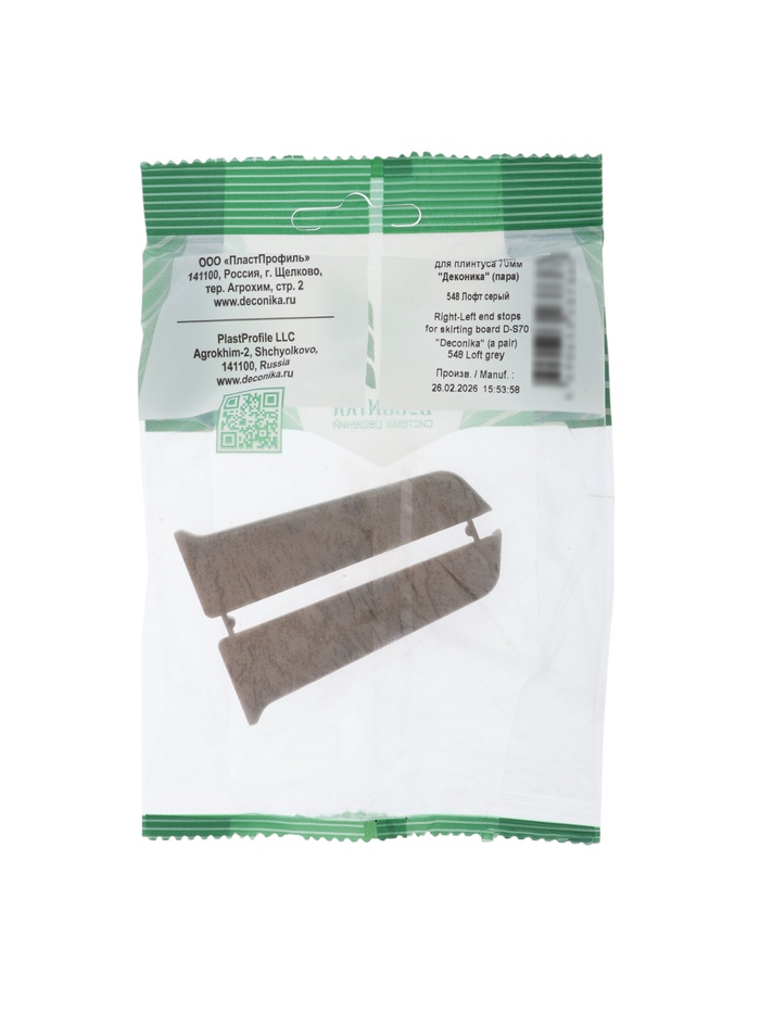 Торцевые (пара) для плинтуса 70мм "Деконика" (пара во флоупаке), 548 Лофт серый