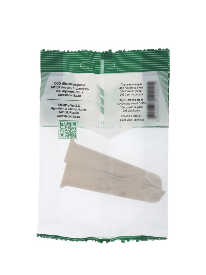 Торцевые (пара) для плинтуса 85мм "Деконика" (пара во флоупаке), 002 Светло-серый