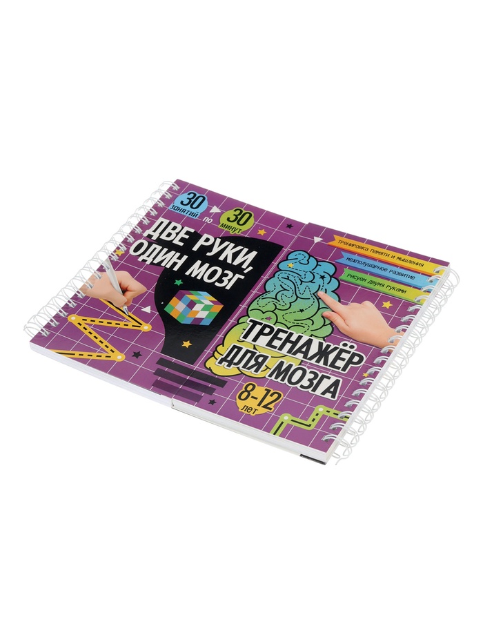 Тренажёр «Две руки, один мозг» — это уникальное пособие для детей от 8 до 12 лет, которое развивает логику, мышление и мелкую моторику. Интегральный переплёт с пружинами и двойная обложка делают его удобным для ежедневного использования.