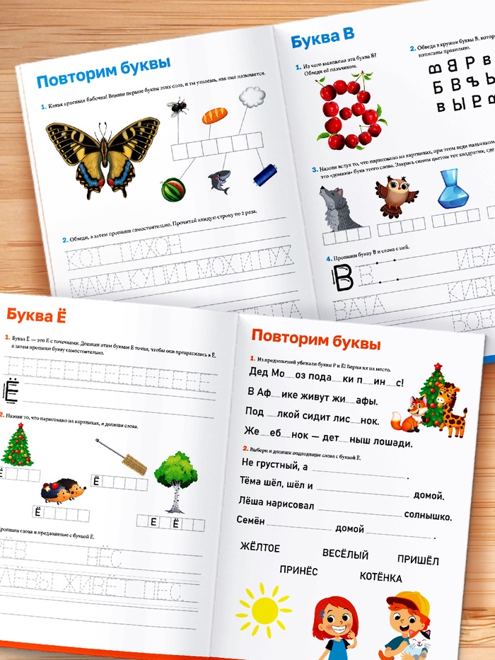 Здесь нет скучного заучивания. Вместо этого — игры на внимание, задания на слуховое восприятие, обводки, раскраски и весёлые ассоциации. Ребёнок не «делает уроки» — он играет с буквами, как с друзьями, и постепенно запоминает, как они звучат, выглядят и ведут себя в словах.