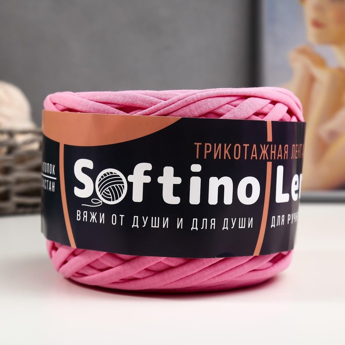 Трикотажная пряжа лицевая Softino «Лентино», 100 м/320±10 г, 7-8 мм, (розовый)