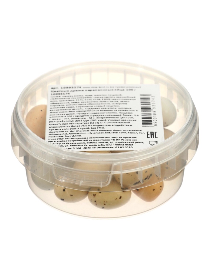 - Форма перепелиного яйца: Изящные миниатюрные драже повторяют форму настоящих перепелиных яиц. Натуральный вид и нежный размер делают их идеальным дополнением к пасхальной корзине или десертному столу.