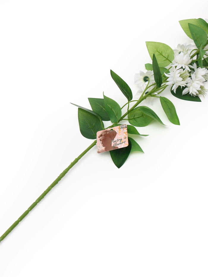 Белая нежность для вашего интерьера. Искусственный клематис «Эллен» — это изящная высокая ветка с крупными текстильными цветами. Она создает эффект свежести и натуральности, не требуя ухода.
