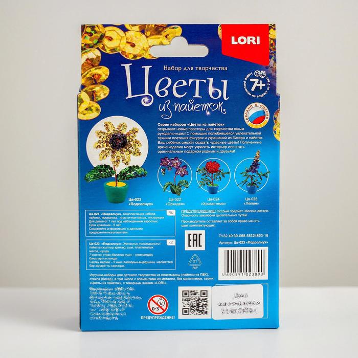 Технические характеристики Цветы из пайеток «Подсолнух»