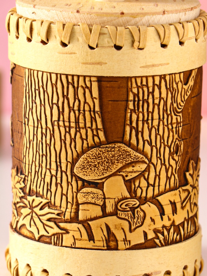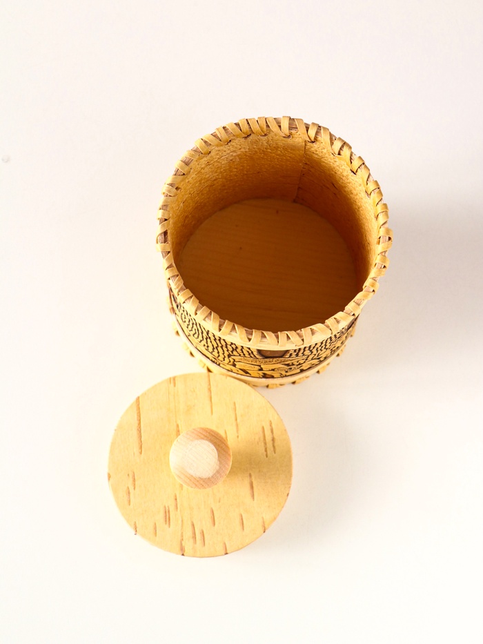 - Деревянная крышка: Плотная и надежная, она обеспечивает защиту от пыли и посторонних запахов. Крышка из дерева идеально дополняет эстетику берестяного туеса.
