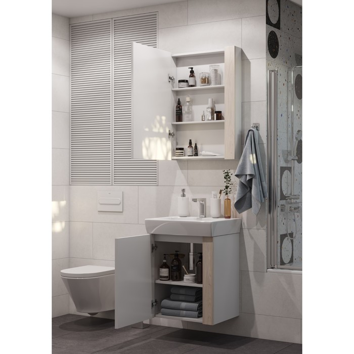 | ПримечаниеОттенок данного товара может незначительно отличаться от фото/видеоизображения (в зависимости от настроек яркости вашего экрана). Раковина в комплект не входит Изготовитель оставляет за собой право вносить в конструкцию, внешний вид и упаковку изделия незначительные изменения, которые не влияют на качество продукции или улучшают его. Перед сборкой изделия проверьте качество, количество деталей, их размер и целостность в соответствии с инструкцией. Претензии после сборки не принимаются. | Размеры упаковки47.8 см × 57.4 см × 67.5 см | СтранаРоссия |