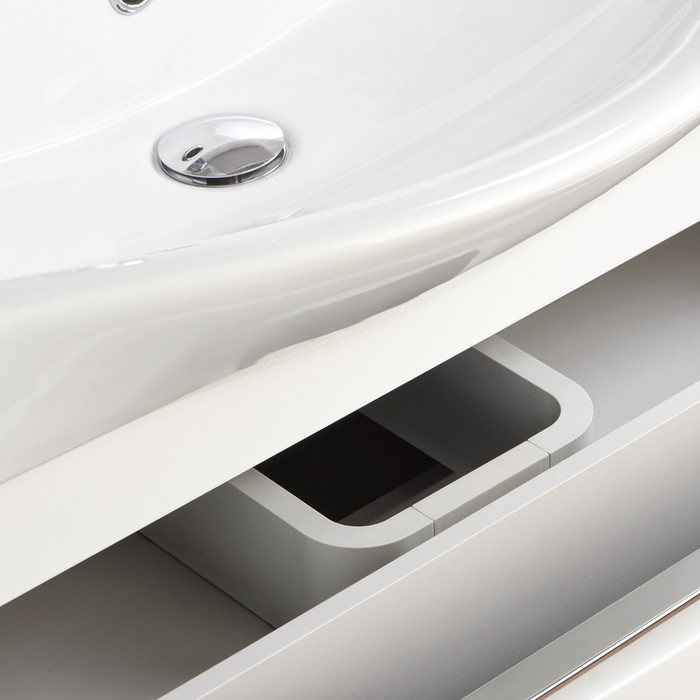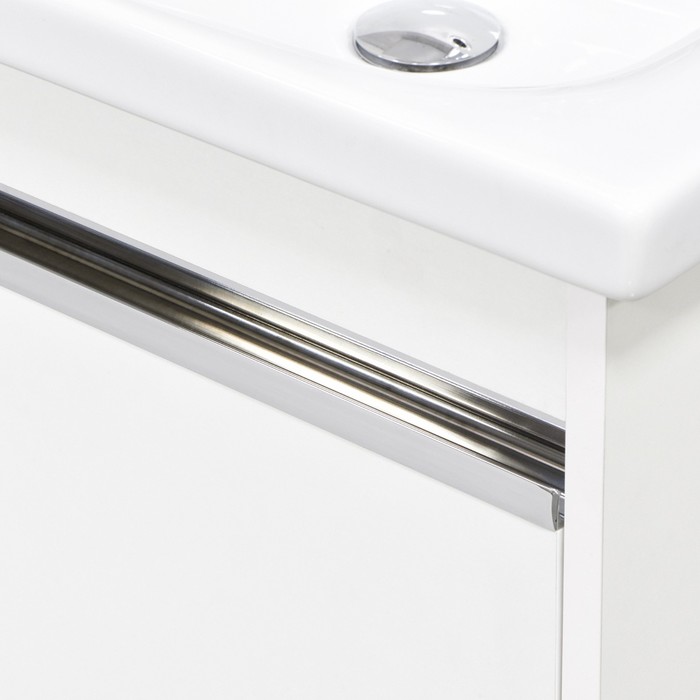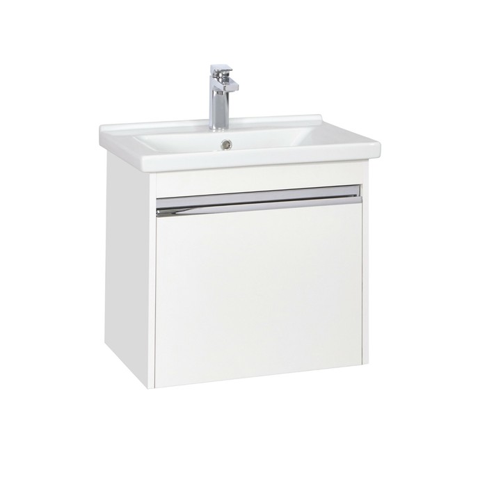 Тумба под раковину Капри 60 от AQUATON в цвете белый глянец отражает современные тенденции в дизайне мебели для ванных комнат: минимализм в чистом виде с простыми и понятными формами, отсутствие лишних деталей, удобные профильные ручки, интегрированные в фасад.