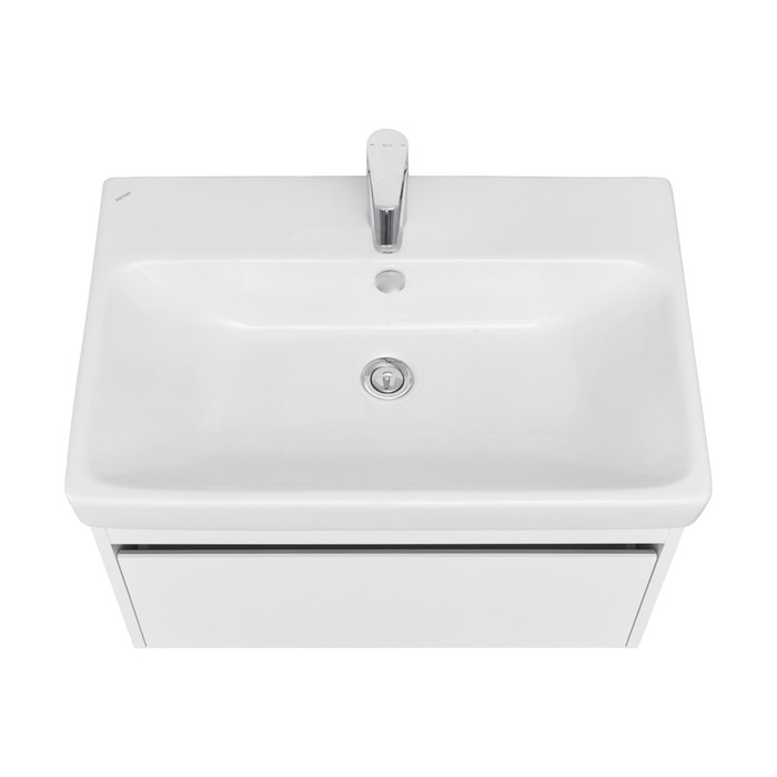 Тумба Марти 70 отличается вместительностью и удобством в использовании: при желании в ящике можно организовать хранение не только шампуней и кремов, но и, например, полотенец. При этом тумба смотрится интересно благодаря выпилу на фасаде, который позволяет открывать тумбу за фасад: в углублении видна контрастная вставка в древесной отделке. Эта акцентная деталь придает модели графичность и позволяет подчеркнуть правильные пропорции тумбы.