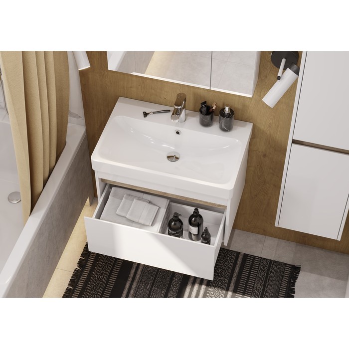 Тумба Aquaton Марти под раковину Адриана 70, цвет белый, дуб эндгрейн