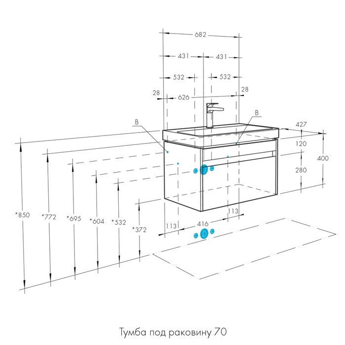 | Подходит для раковины | Адриана 70 |