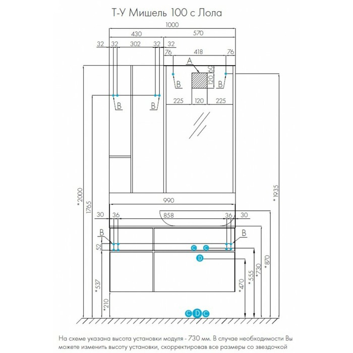 | Примечание | Оттенок данного товара может незначительно отличаться от фото/видеоизображения (в зависимости от настроек яркости вашего экрана). Раковина в комплект не входит Изготовитель оставляет за собой право вносить в конструкцию, внешний вид и упаковку изделия незначительные изменения, которые не влияют на качество продукции или улучшают его. Перед сборкой изделия проверьте качество, количество деталей, их размер и целостность в соответствии с инструкцией. Претензии после сборки не принимаются. Выгрузка товара и подъём на этаж осуществляются покупателем. |