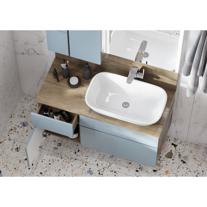 | ПримечаниеОттенок данного товара может незначительно отличаться от фото/видеоизображения (в зависимости от настроек яркости вашего экрана). Раковина в комплект не входит Изготовитель оставляет за собой право вносить в конструкцию, внешний вид и упаковку изделия незначительные изменения, которые не влияют на качество продукции или улучшают его. Перед сборкой изделия проверьте качество, количество деталей, их размер и целостность в соответствии с инструкцией. Претензии после сборки не принимаются. Выгрузка товара и подъём на этаж осуществляются покупателем. | Размеры упаковки51.2 см × 106.2 см × 56.6 см | СтранаРоссия |
