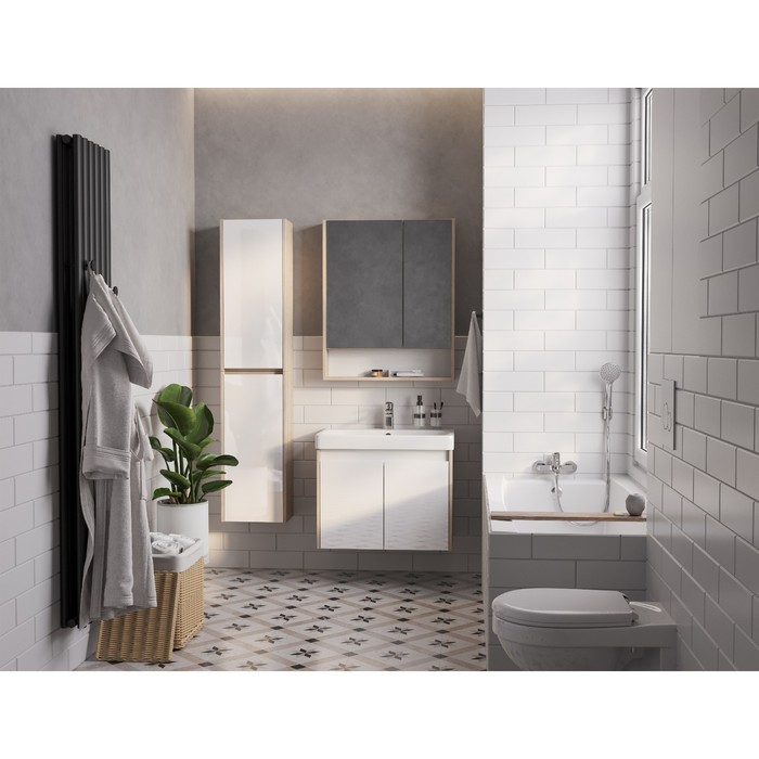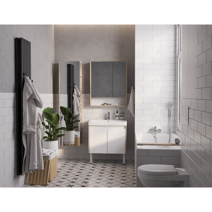 Тумба Aquaton Сканди Doors под раковину Адриана 70, цвет белый глянец, дуб верона