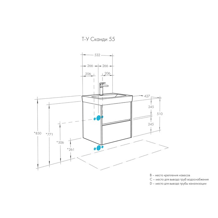 Технические характеристики Тумба Aquaton Сканди под раковину Адриана 55, цвет белый матовый, белый глянец