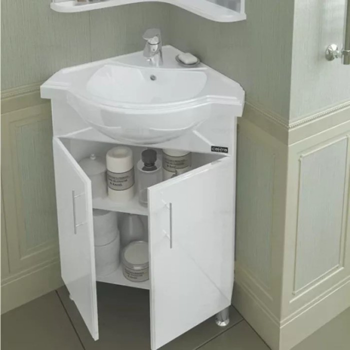 Тумба напольная угловая «Аврора 60», с раковиной «Классик», цвет белый