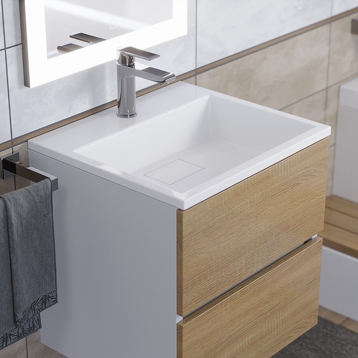 Тумба подвесная Uperwood, с раковиной Uperwood Barsa 50, цвет белый/дуб сонома