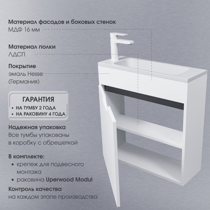 Технические характеристики Тумба подвесная Uperwood, с раковиной Uperwood Modul 50, цвет белый/графит