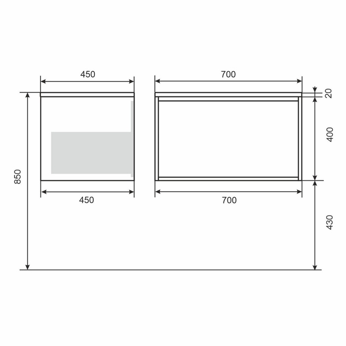 Технические характеристики Тумба подвесная Uperwood, с раковиной Uperwood Next Premium 70, 1 ящик, цвет белый/графит