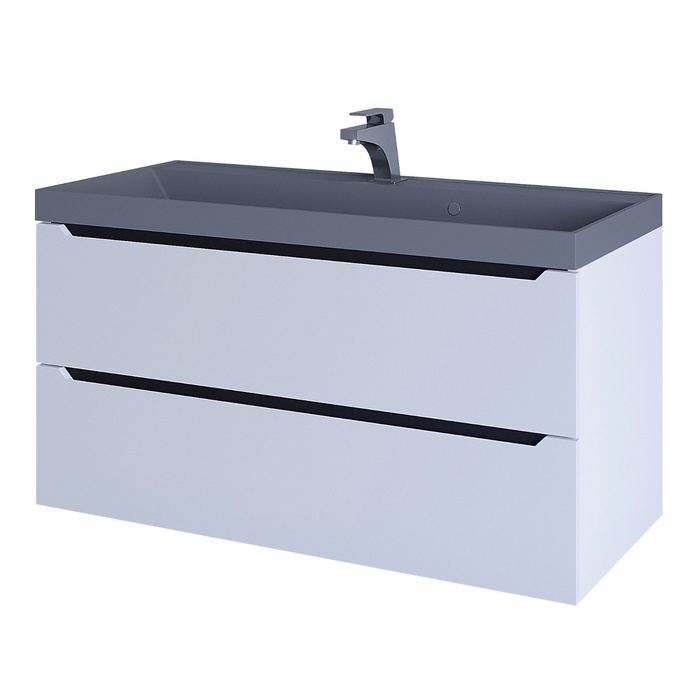 Тумба подвесная Uperwood, с раковиной Uperwood Tanos Classic Quartz 100, цвет белый/графит/бетон