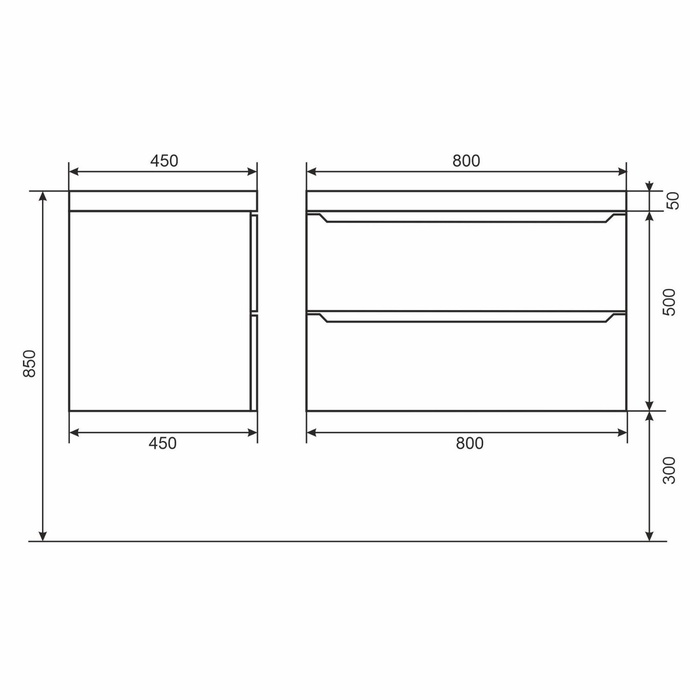 - Выдвижные ящики из влагостойкой ЛДСП, оснащены доводчиками.