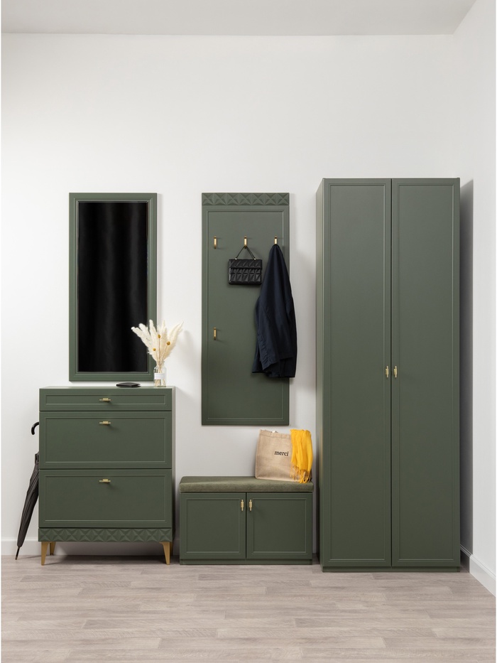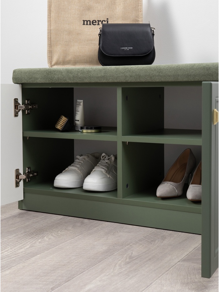Тумба для обуви «Марион 14.64», 815×380×490 мм, цвет дымчатый зеленый / олива шагрень