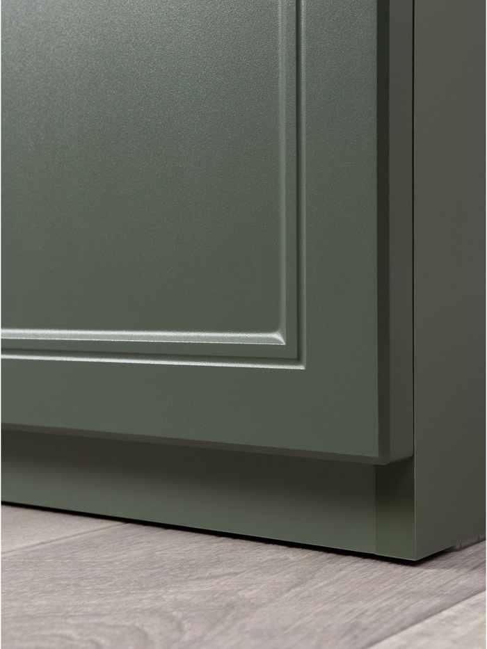Фасады с изящной фрезеровкой подчёркивают классический стиль модели, а благородный оттенок «Олива шагрень» с глубоким зелёным тоном создаёт уютную и тёплую атмосферу уже при входе в дом.