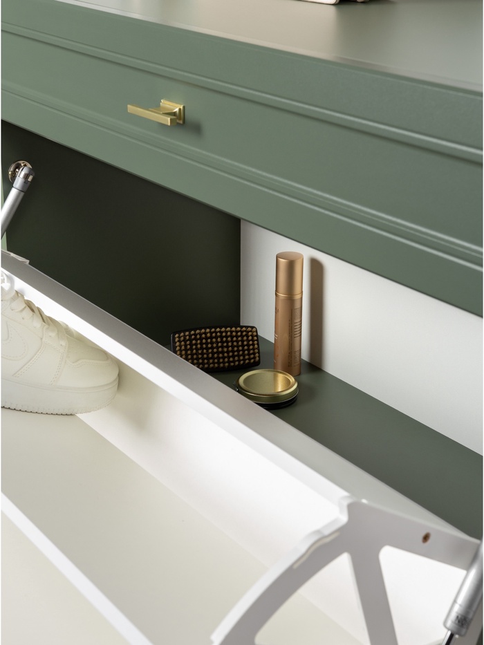 Тумба для обуви «Марион 16.134», 801×369×1066 мм, цвет дымчатый зеленый / олива шагрень