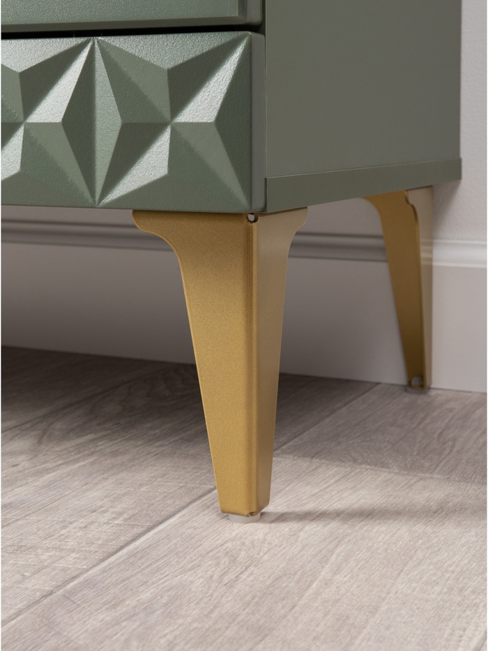 Металлические ручки и опоры с эффектом золота добавляют выразительности и делают тумбу стильным элементом обстановки.