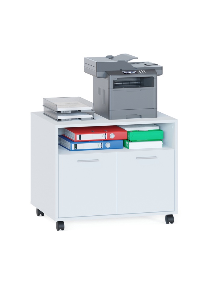 Модель оснащена открытой нишей для быстрого доступа к часто используемым предметам, а также закрытым отделением с распашными дверцами для аккуратного хранения документов и различных вещей. Просторная столешница позволяет использовать тумбу как дополнительную рабочую поверхность.