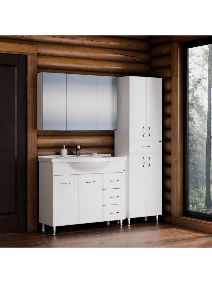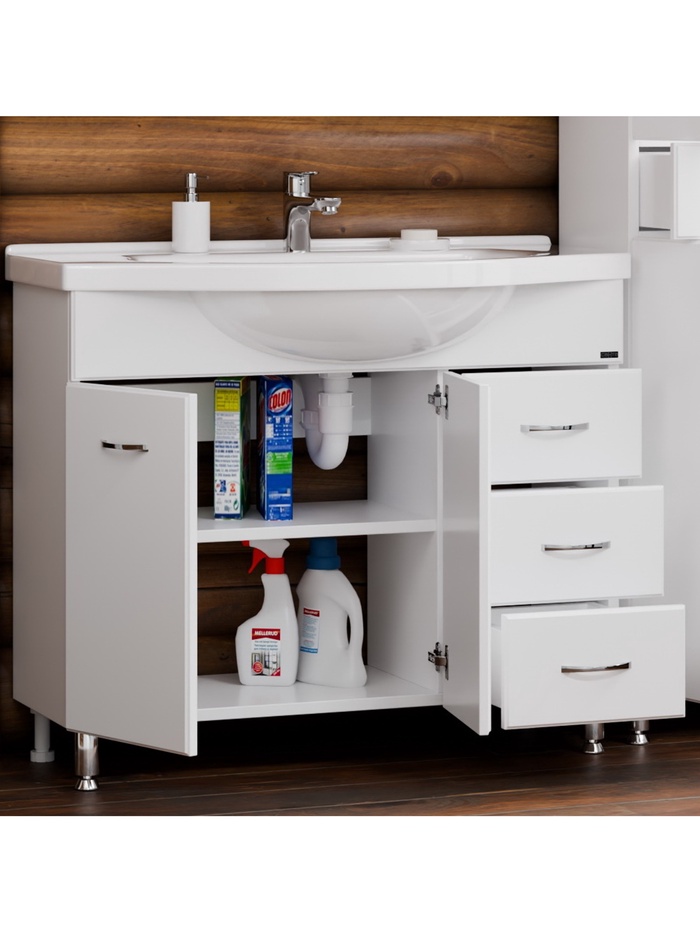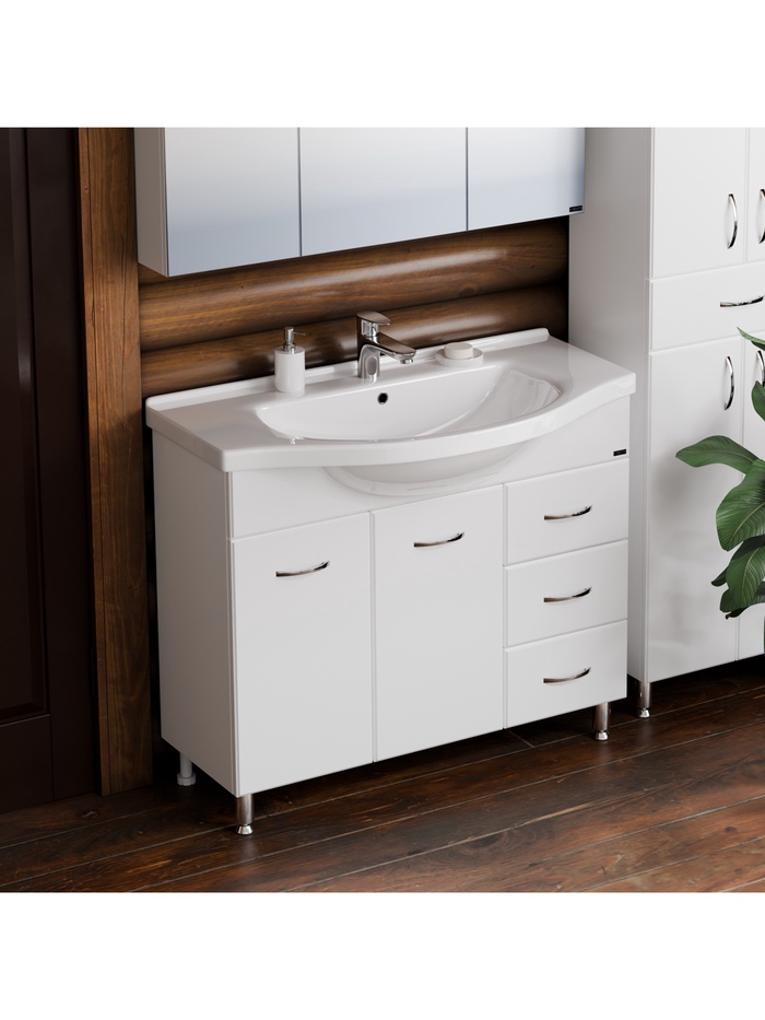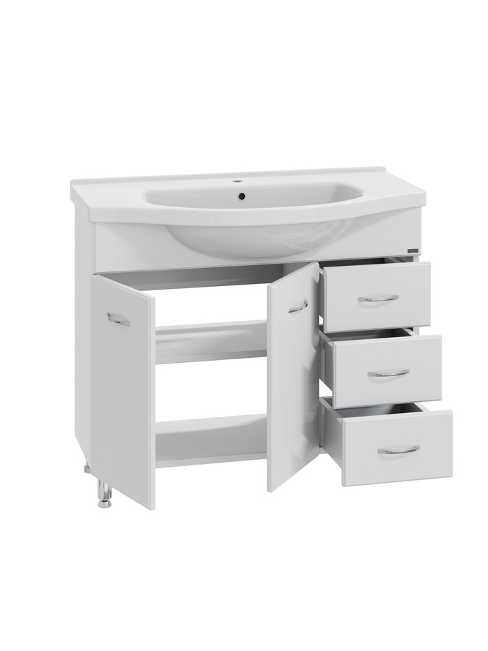 Тумба напольная «Эльбрус 100», под раковину «Эльбрус 100», 3 ящика, цвет белый