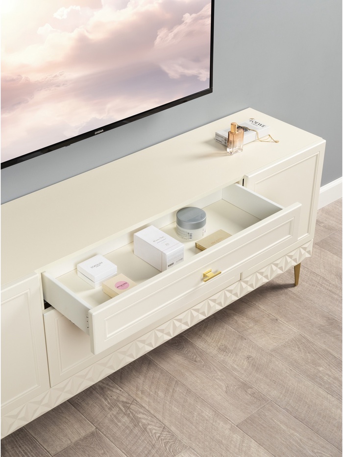 Тумба «Марион» — стильное и функциональное решение для гостиной, выполненное в элегантном классическом стиле. Модель сочетает в себе компактность и практичность, позволяя удобно организовать хранение и дополнить интерьер выразительным акцентом.