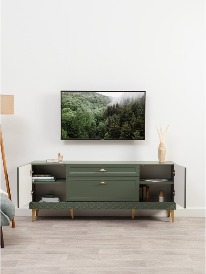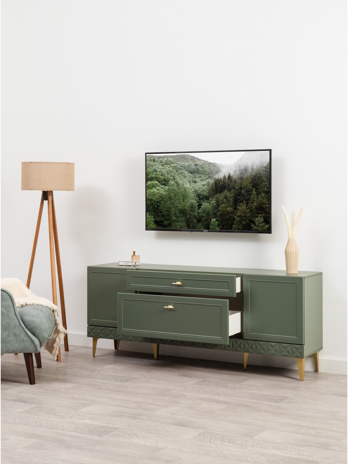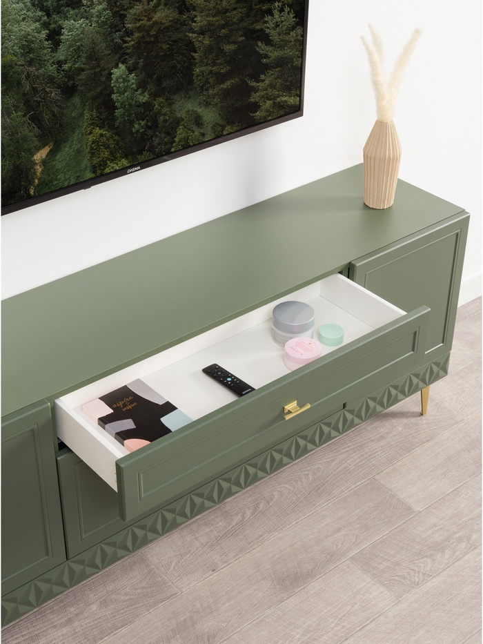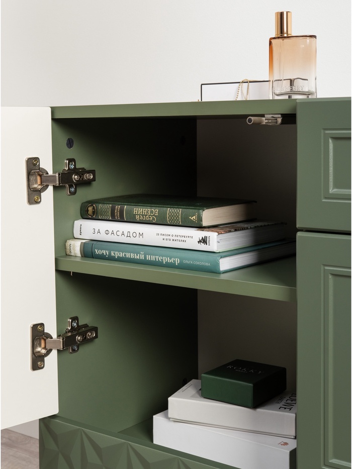 Тумба напольная «Марион 16.167», 1601×369×649 мм, цвет дымчатый зеленый / олива шагрень