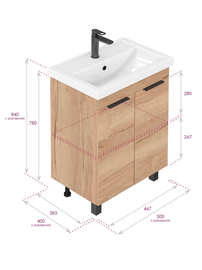 Тумба напольная Onika Легран 50 с раковиной Фостер-50 Кirovit