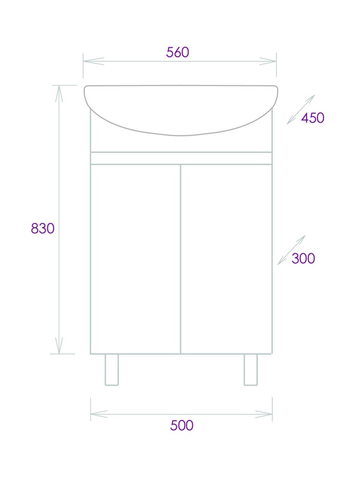 Технические характеристики Тумба напольная Onika Милтон 55 белая раковину Уют-55 Rosa