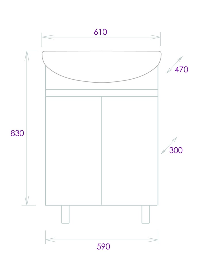 Технические характеристики Тумба напольная Onika «Милтон 60», с раковиной Rosa «Уют – 60», цвет серый/дуб сонома