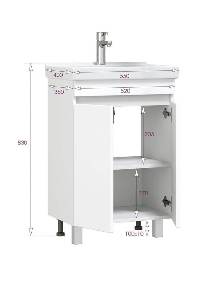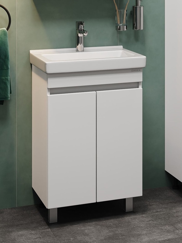 Тумба напольная Onika «Милтон Квадро 55», c раковиной Santeri «Визит 55», цвет белый