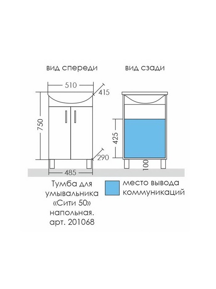 Технические характеристики Тумба напольная «Сити 50», под раковину «Уют 50», цвет белый