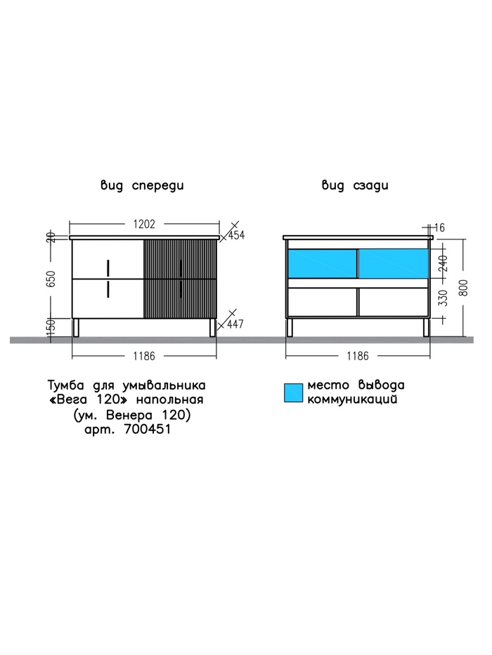 Технические характеристики Тумба напольная «Вега 120», под раковину «Венера 120 », 4 ящика, цвет белый