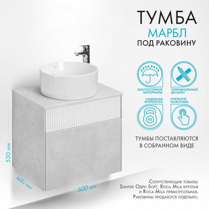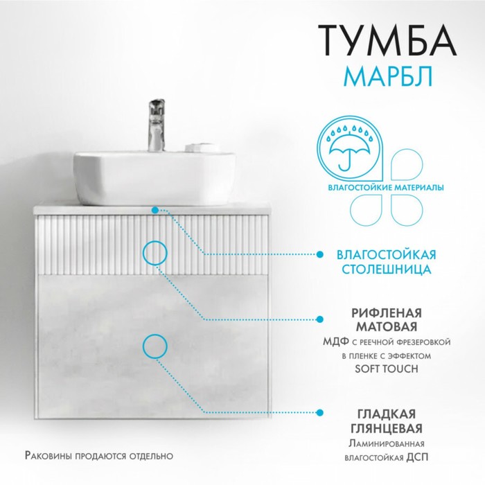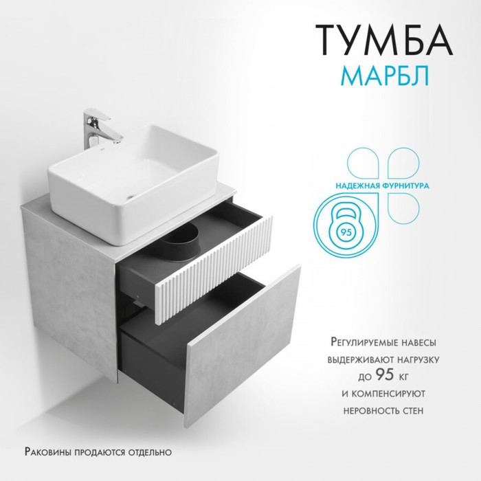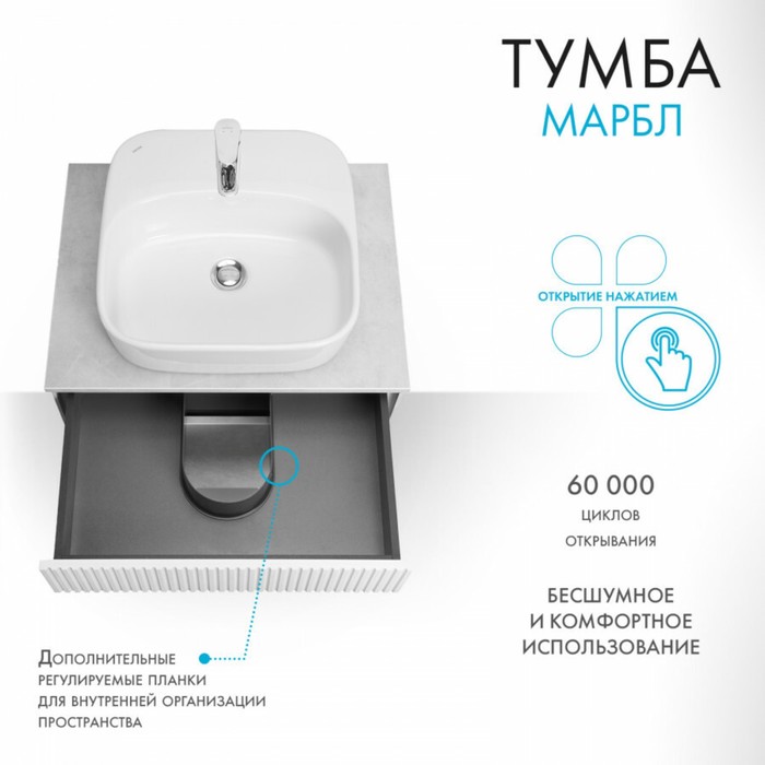 Технические характеристики Тумба под раковину Aquaton Марбл, 60 см, цвет слэйт, белый матовый