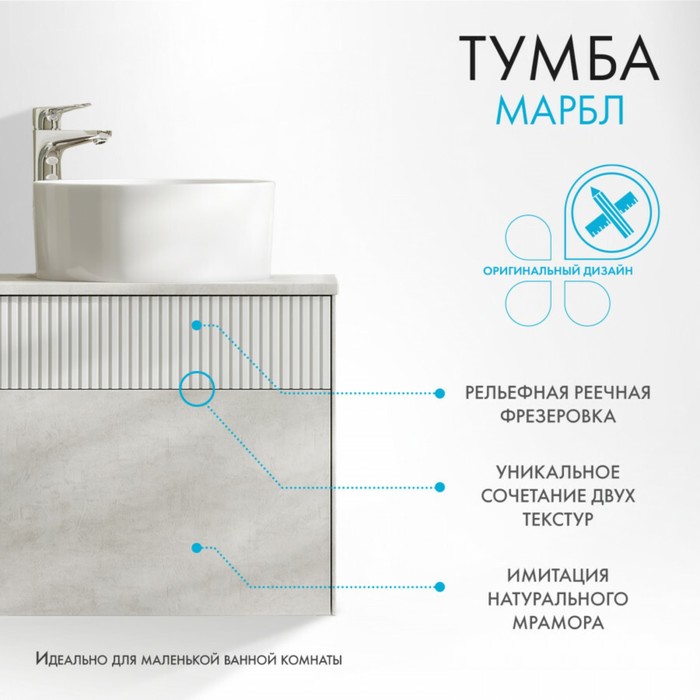Тумба под раковину Aquaton Марбл, 60 см, цвет слэйт, белый матовый