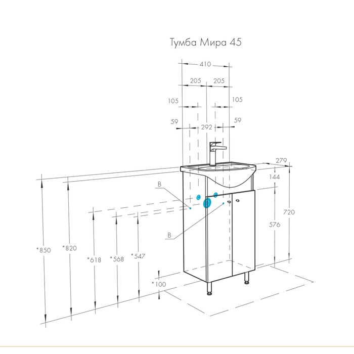 - Размер тумбы (Ш х В х Г): 410 х 820 х 299 мм.
