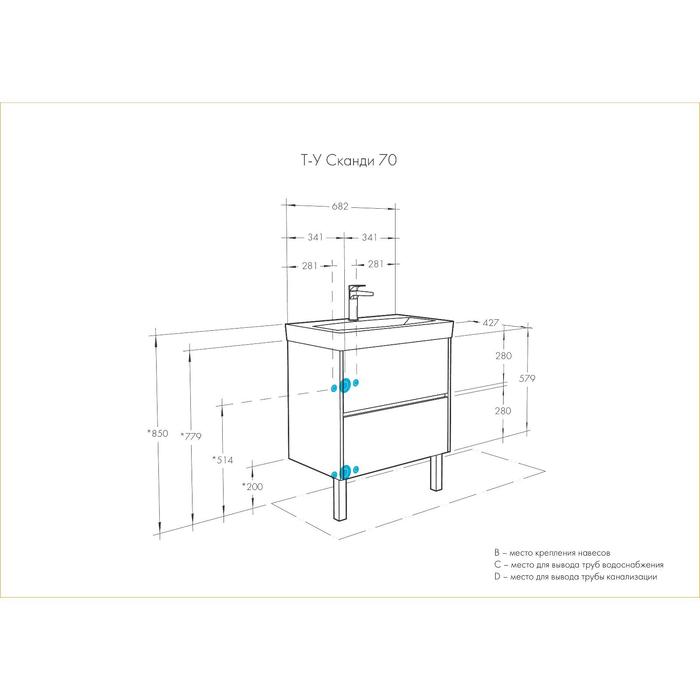 Технические характеристики Тумба под раковину AQUATON Сканди 70 белая, дуб рустикальный 1A251801SDZ90