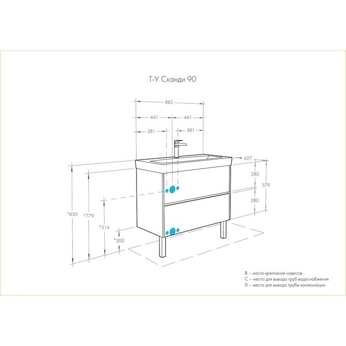 Технические характеристики Тумба под раковину AQUATON Сканди 90 белая, дуб верона 1A251901SDB20