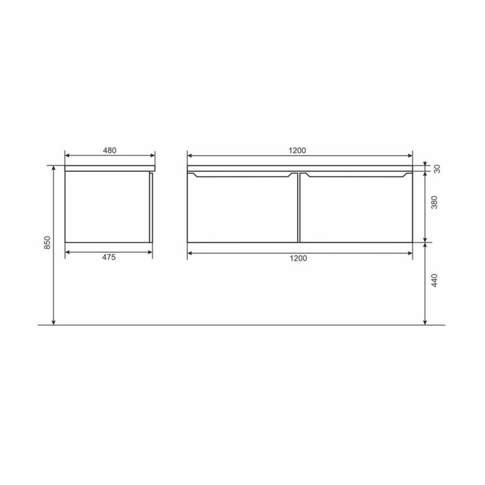 Размерный ряд тумб под раковину Tanos представлен моделями 120 см правосторонней и левосторонней ориентации. На выбор предлагаются изделия белого цвета или белого с графитовыми вставками.