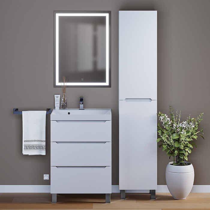 Элегантный минималистичный дизайн тумбы дополняет её безупречная матовая поверхность.