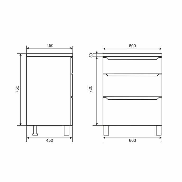 Напольная тумба под раковину для ванной Uperwood Tanos с тремя выдвижными ящиками представляет собой функциональное, надёжное и практичное решение, которое отлично впишется в любой современный дизайн ванной комнаты.