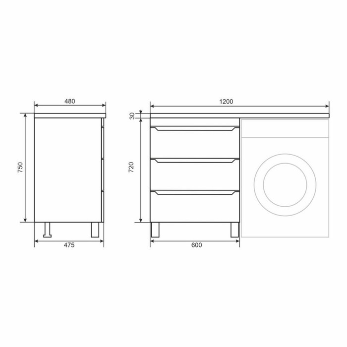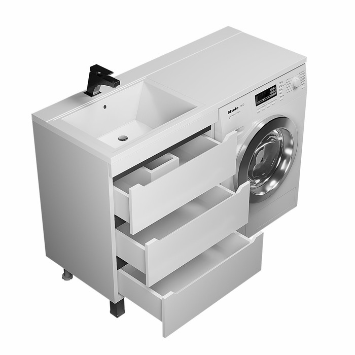 Тумба под раковину для установки со стиральной машиной Uperwood Tanos с выдвижными ящиками представляет собой функциональное, надёжное и практичное решение, которое отлично впишется в любой современный дизайн ванной комнаты.