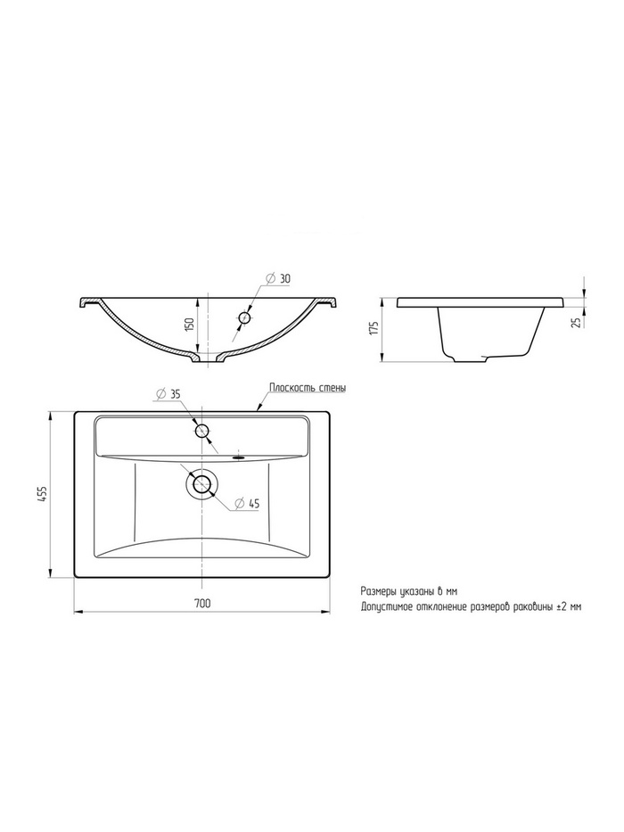 | Форма раковины | Прямоугольная |