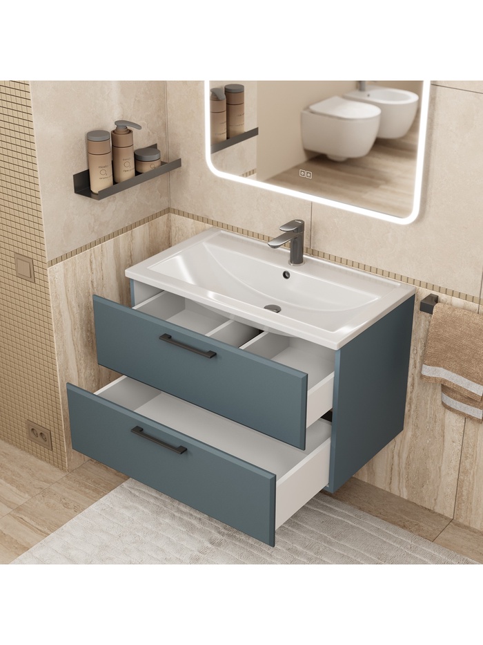 - Элегантный дизайн: тумба украшена приятной на ощупь матовой поверхностью Soft Touch, гармонично дополняющей интерьер ванной комнаты.