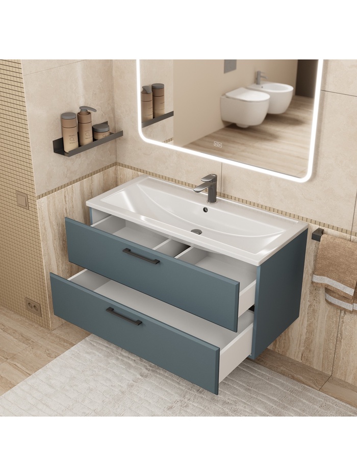 - Правильная интеграция: выбираются подходящие по размеру раковины из коллекции Uperwood Foster (размеры варьируются от 60 до 100 см).